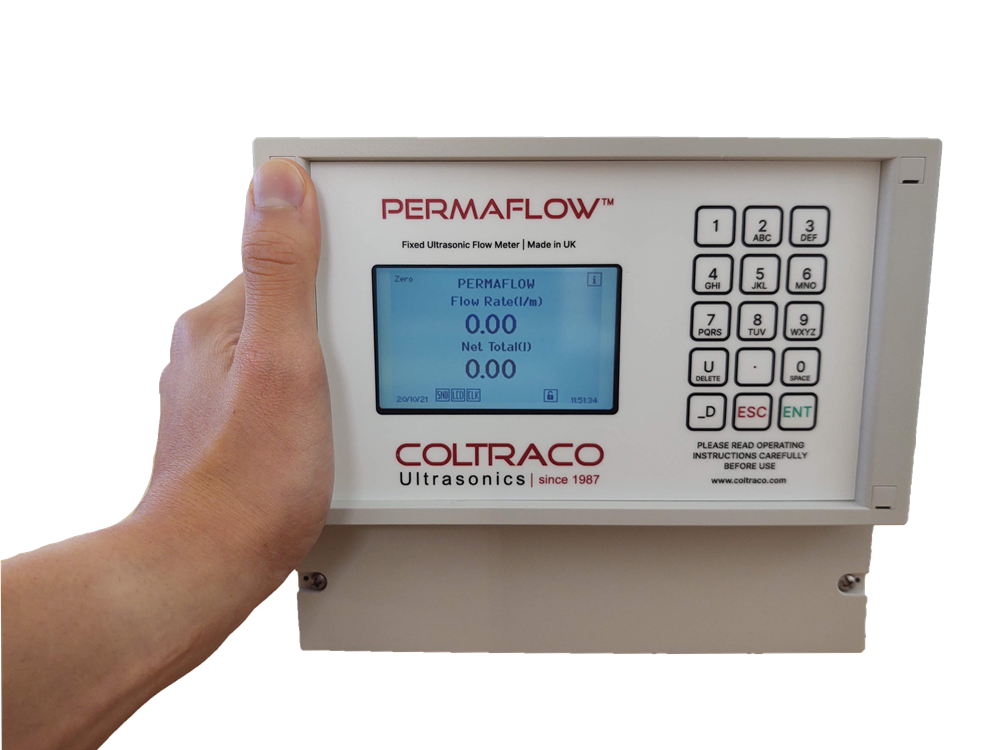 The Permaflow® is a fixed, clamp-on, ultrasonic transit time flow and heat meter that is non-invasive for measuring the flow rates of liquids containing less than 10% of gas/solid contents. It is mains powered, designed for 24/7 monitoring and is accurate to +/- 0.5% of measured value under ideal conditions.