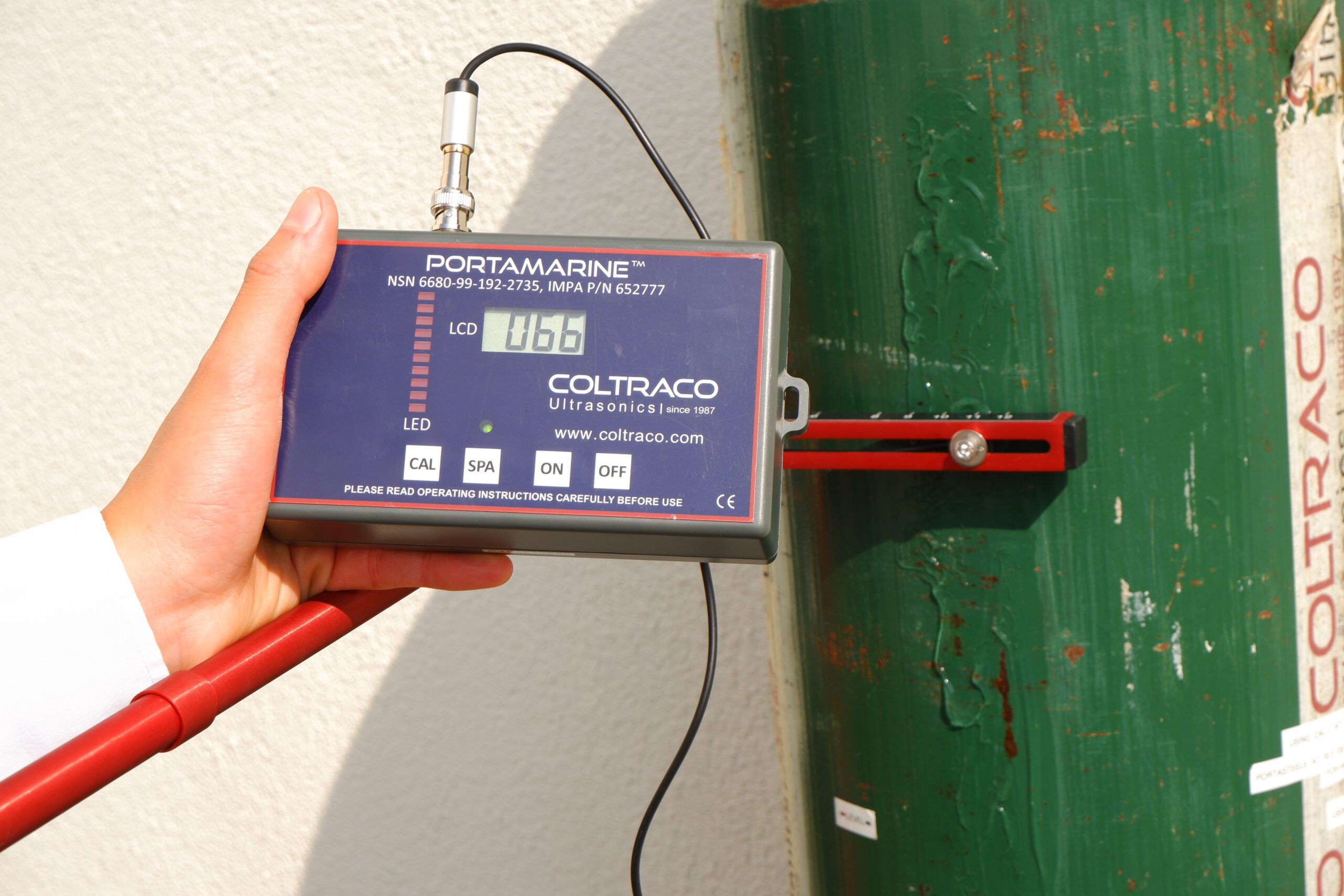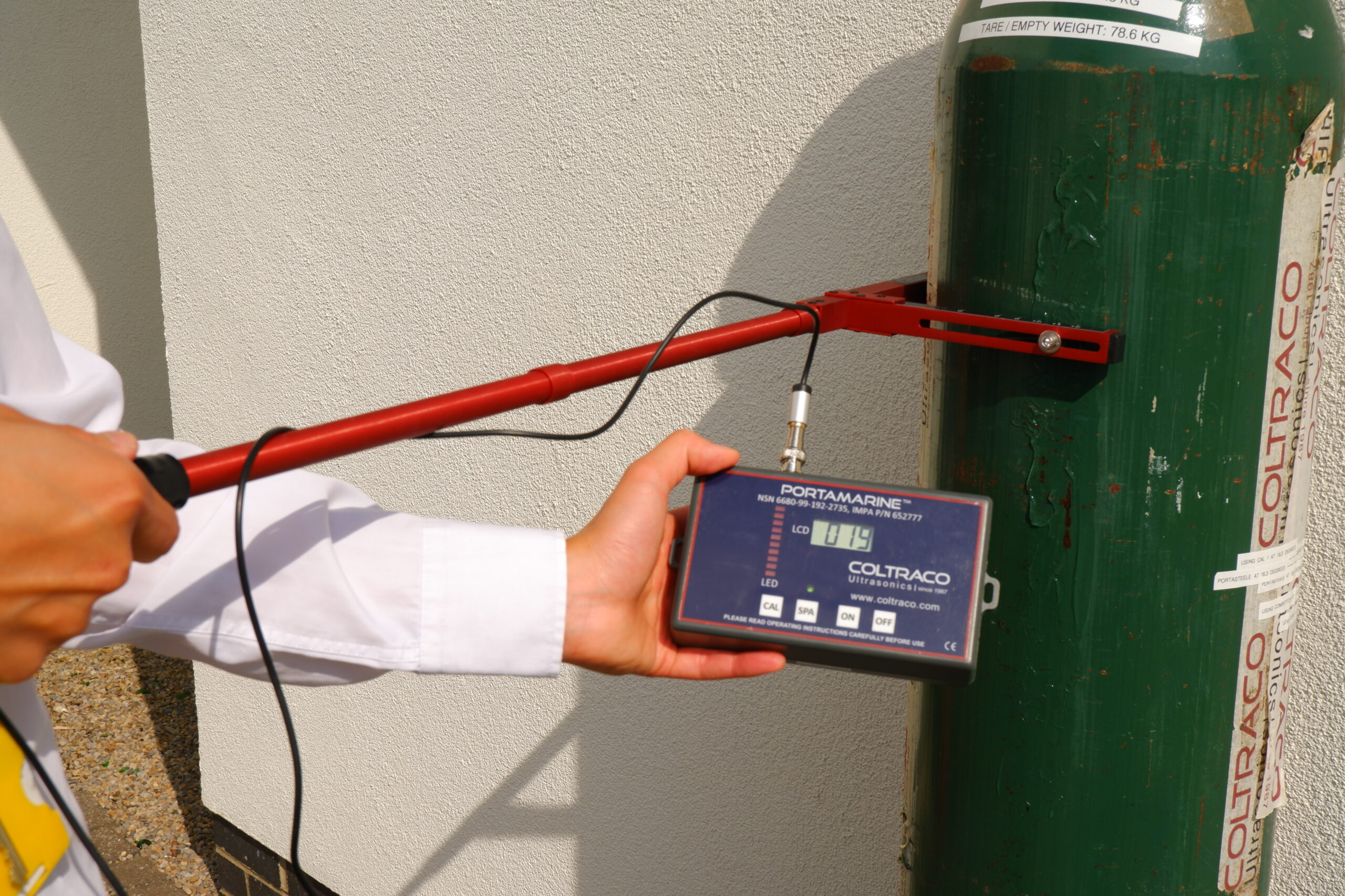 Portamarine® is a low-cost, portable, and battery powered liquid level indicator designed to non-invasively, accurately, and reliably measure the level of fire suppression agent contained within a cylinder. Portamarine® is suitable for most standard size cylinders containing CO2, Liquified Clean Agents and Halons and is specifically equipped for use onboard marine vessels and environments in the marine sector.